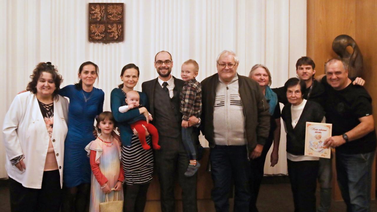 Děti pak obdržely protokol a malý dárek pro štěstí. Na protokoly se jim přítomní rádi podepsali. Sestře Andulce se bravurně podepsal i čtyřletý šikula, bráška Toník, ano přesně takhle to na papír vysekl.