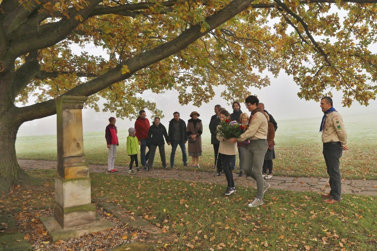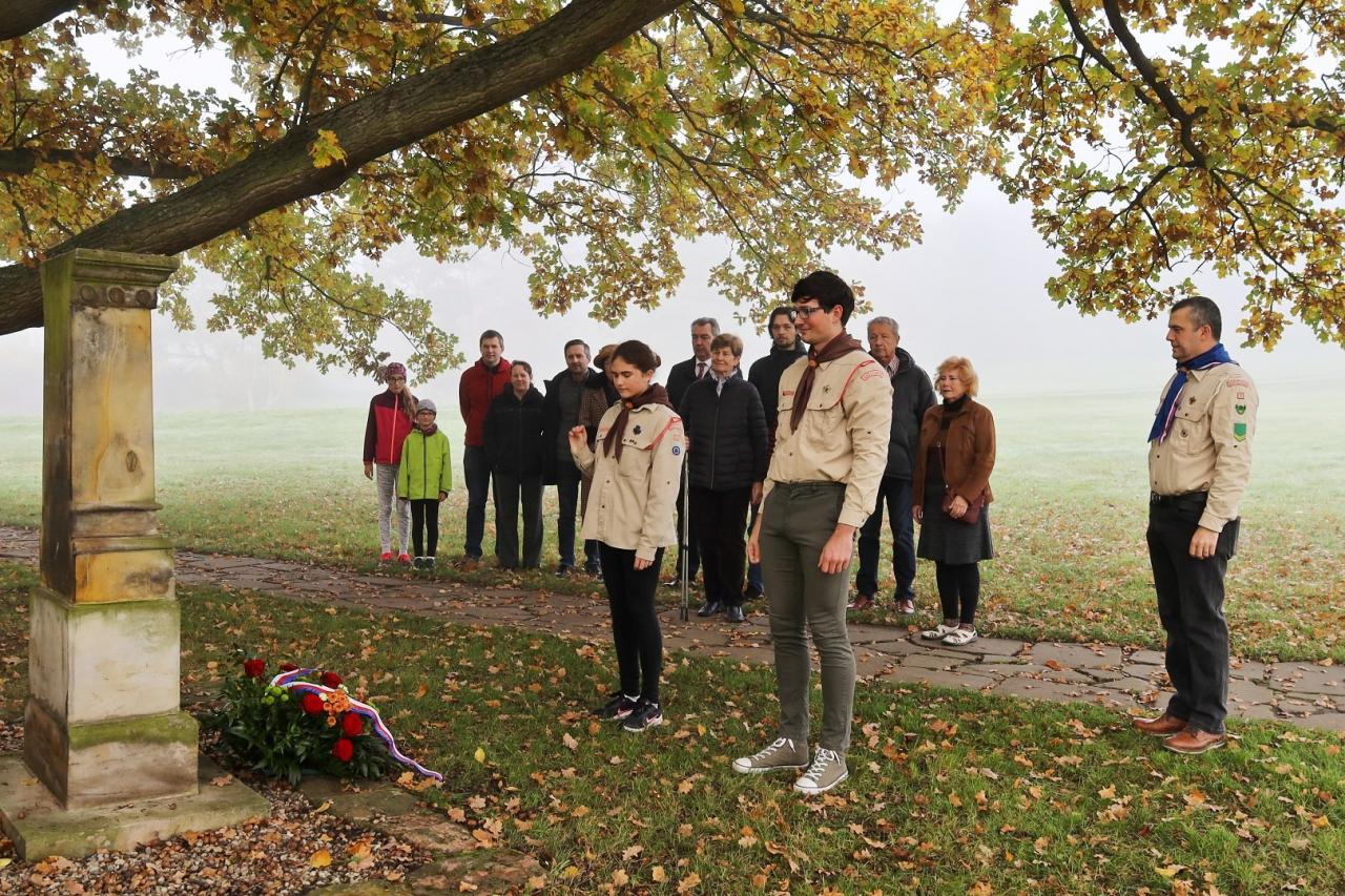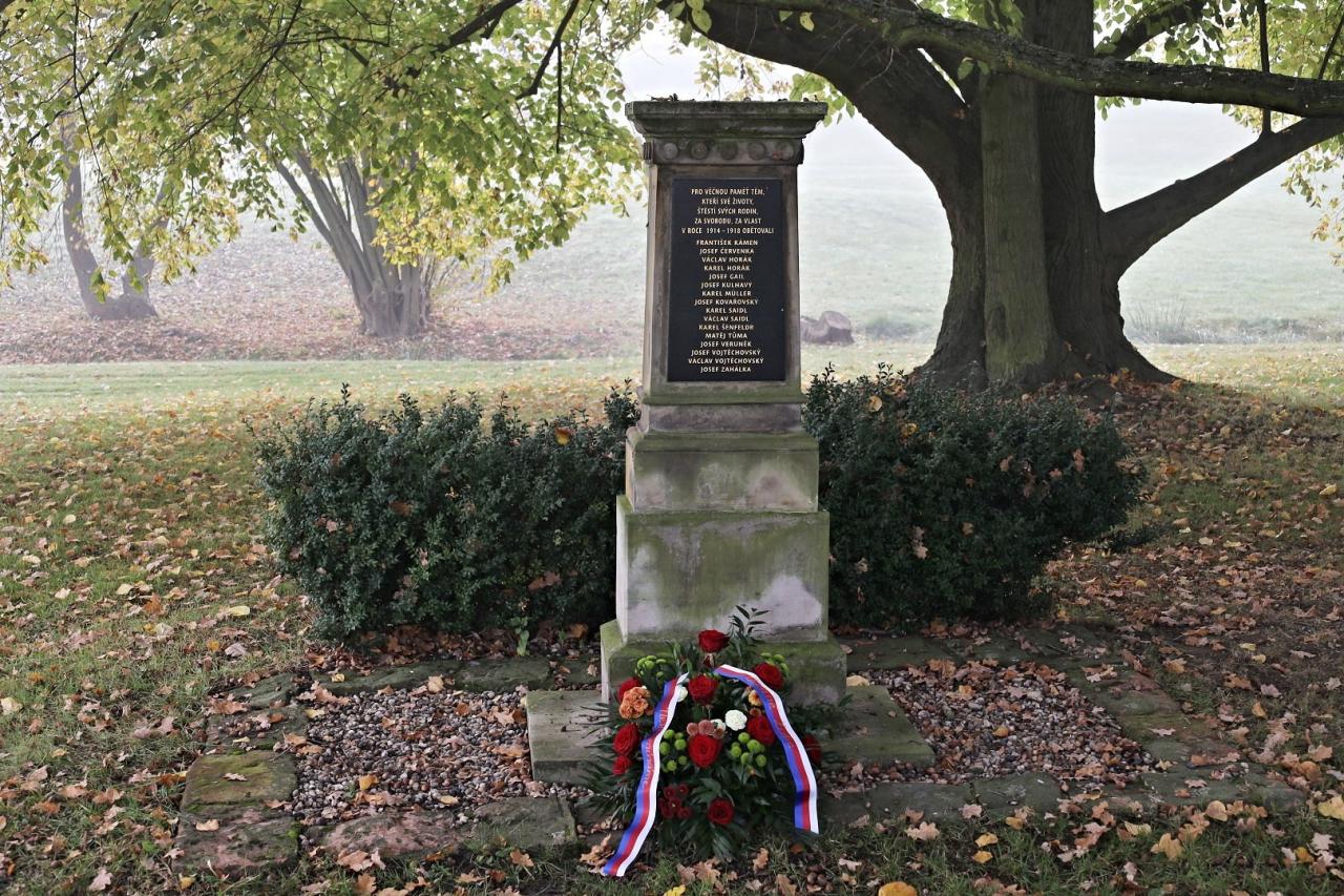 Mlhavé dopoledne přivítalo skupinku lidických občanů, v místech kde před 80 lety a několika měsíci stávala malebná vesnička, žijící svým všedním životem. Ta vesnička už zde ale není, je tu pietní území, holá pláň, plná tichých emocí, vzpomínek a smutku. V její spodní části je instalovaný památník lidickým obětem 1. světové války. Je na něm 16 jmen lidí, kteří se tehdy nevrátili domů. je již tradicí, že u příležitosti státního svátku Vzniku Československého státu, 28. října, občané Lidic uctí památku padlých a také si uvědomí svou státnost právě zde.
