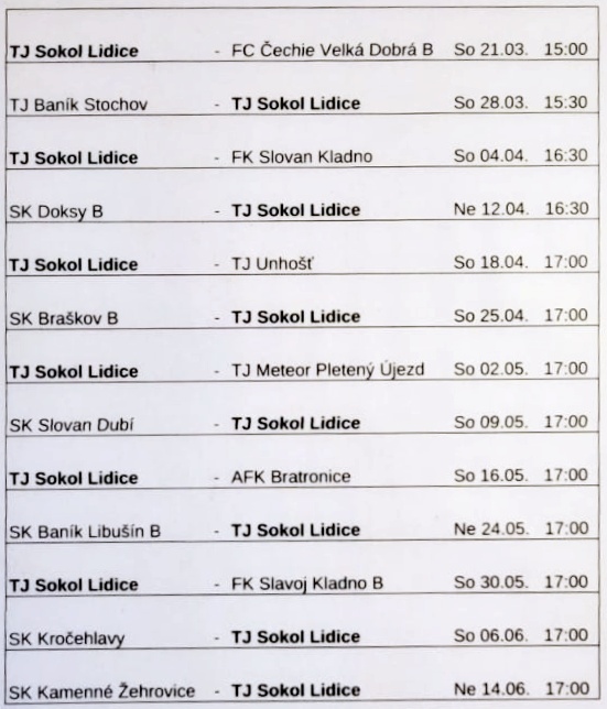 Sokol Lidice - TJ Unhošť -:- / ... kolo 18. 4. 2026 13:30